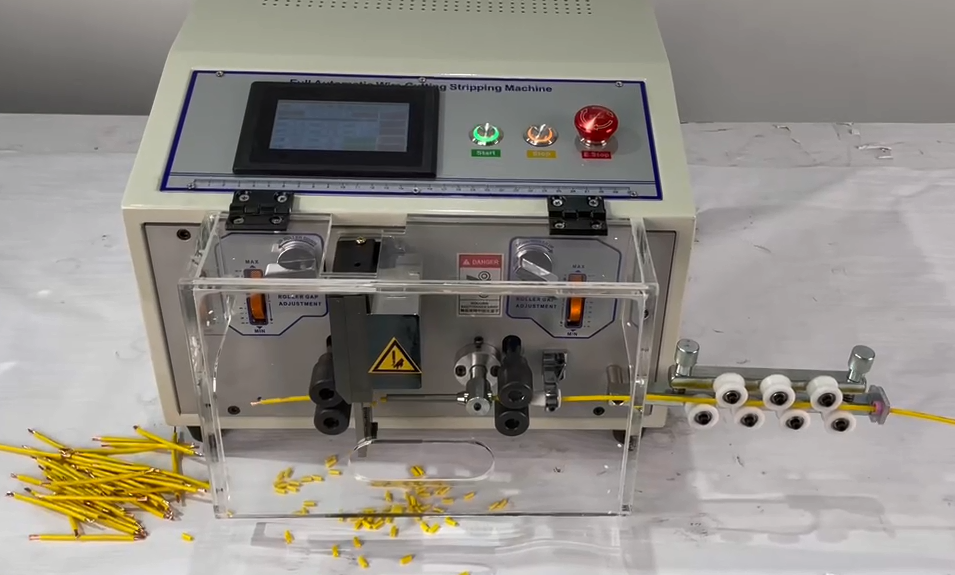 針對電子線、硅膠線、玻璃釬維線、隔離線、銅軸線、套管等全自動裁剪、剝皮、半剝、中剝功能,可瞬間變換電線規格及尺寸,加工過程中,當電線用完時會自動停機和報警...